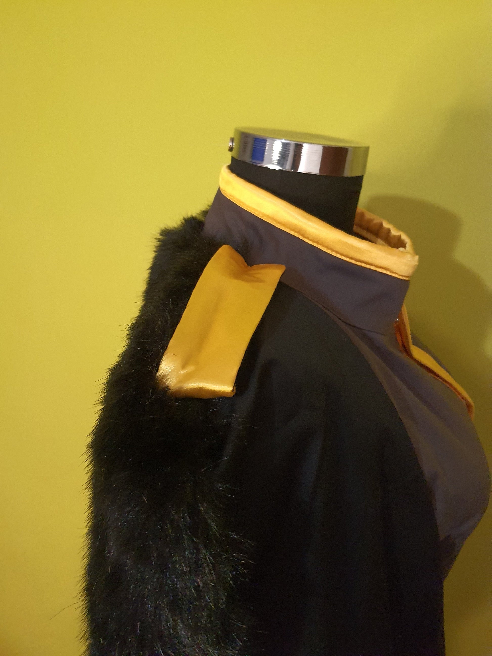 The costume is made out of cotton and faux fur.